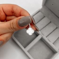 Pingente trevo madrepérola com bolinhas 12mm | Mya Prata