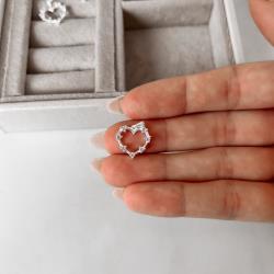 Pingente coração vazado com zircônias 14mm | Mya Prata