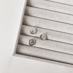 Pingente medalha letra C cravejada 15mm | Mya Prata