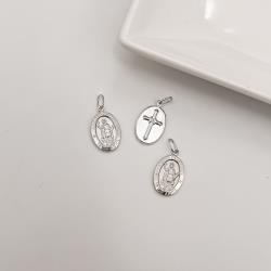 Pingente medalha dupla face Santo Expedito e cruz 16mm | Mya Prata