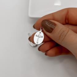 Descrição: Pingente medalha dupla face Santo Expedito e cruz 16mm fabricado(a) em prata