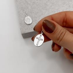Pingente medalha dupla face Santa Ana e cruz 16mm | Mya Prata