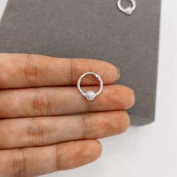 Piercing argola torcida trava com bola cravejada 13mm orelha esquerda | Mya Prata