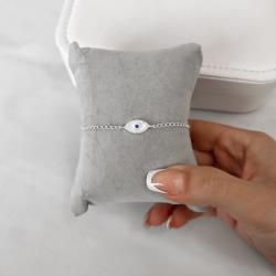 Pulseira entremeio olho cravejado detalhe zircônia azul 12mm | Mya Prata