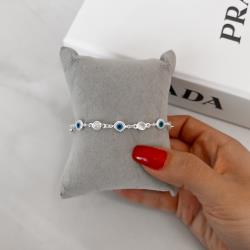 Descrição: Pulseira entremeios olhos gregos turquesa e zircônia cristal 5mm fabricado(a) em prata