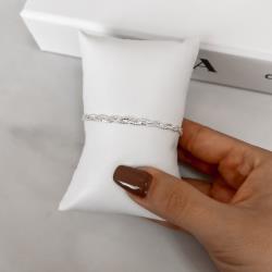 Pulseira corrente trança 3 fios riscados 18cm | Mya Prata