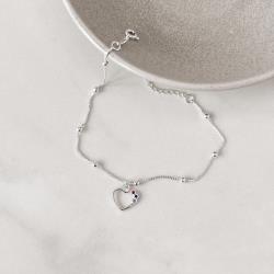 Descrição: Pulseira pingente coração vazado detalhe cravejado colorido 11mm com bolas fabricado(a) em prata