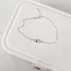 Pulseira entremeio olho grego cravejado 12mm corrente singapura
