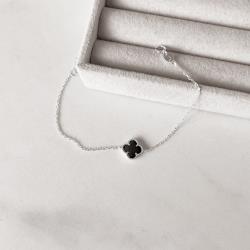 Pulseira entremeio trevo ônix 10mm com bolinhas | Mya Prata