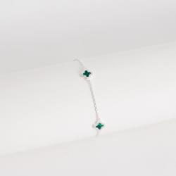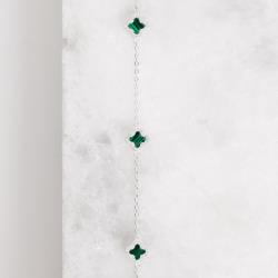 Descrição: Pulseira entremeios trevos malaquita com cravejado 7mm fabricado(a) em prata