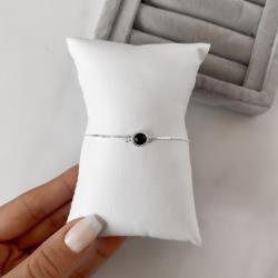 Pulseira entremeio pedra ônix 7mm v15 16cm com alongadora | Mya Prata