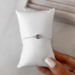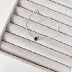 Pulseira entremeio pedra ametista 7mm v15 16cm com alongadora | Mya Prata