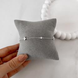 Pulseira entremeio zircônias redonda 3mm e losango 6mm 16+4cm