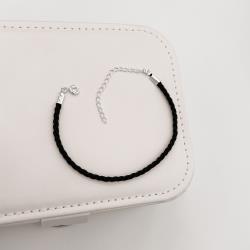 Pulseira cordão trançado preto 2mm 16cm com alongadora | Mya Prata