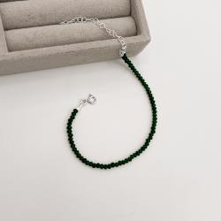 Pulseira cristal verde escuro 3mm 16cm com alongadora | Mya Prata