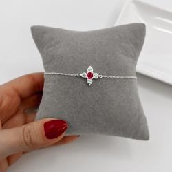 Descrição: Pulseira entremeio flor com zircônias cristal e cereja 14mm fabricado(a) em prata