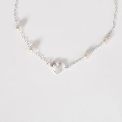 Descrição: Pulseira entremeios pérolas 5mm e coração 10mm corrente cadeado 18cm com alongadora fabricado(a) em prata