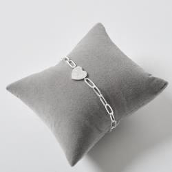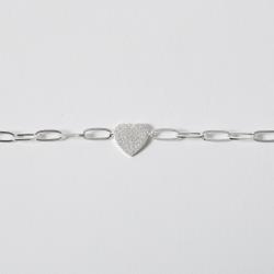 Descrição: Pulseira entremeio coração cravejado 12mm corrente cartier 16+5cm fabricado(a) em prata