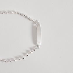 Descrição: Pulseira infantil placa com coração vazado e bolas 16cm fabricado(a) em prata