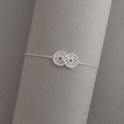 Descrição: Pulseira entremeio infinito cravejado 17mm corrente cadeado 16+4cm fabricado(a) em prata