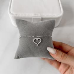 Pulseira pingente coração vazado cravejado 16mm 17+3cm | Mya Prata