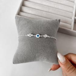 Pulseira entremeio zircônias e olho grego 6mm | Mya Prata