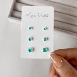 Trio zircônias quadradas 3, 4 e 5mm acqua | Mya Prata