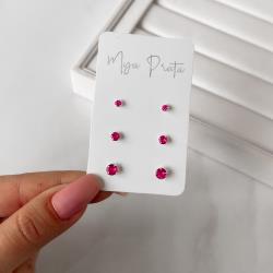 Trio zircônia redonda 3, 4 e 5mm cereja | Mya Prata