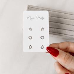 Trio estrela, coração e gota vazada 6mm | Mya Prata
